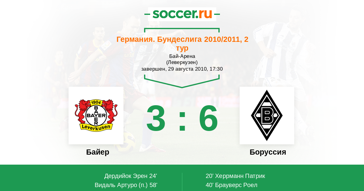 Протокол матча Байер против Боруссия