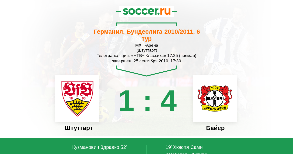 Протокол матча Штутгарт против Байер