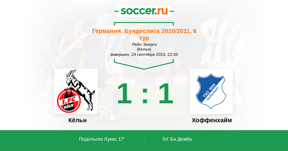 Протокол матча Кёльн против Хоффенхайм