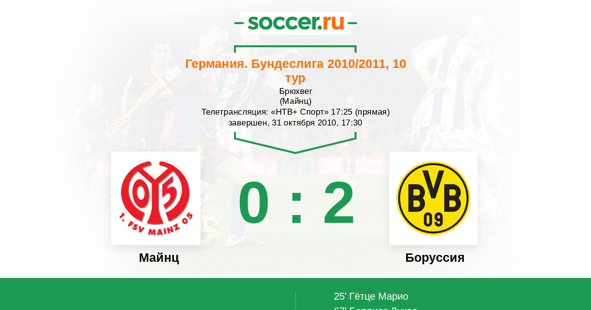 Протокол матча Майнц против Боруссия