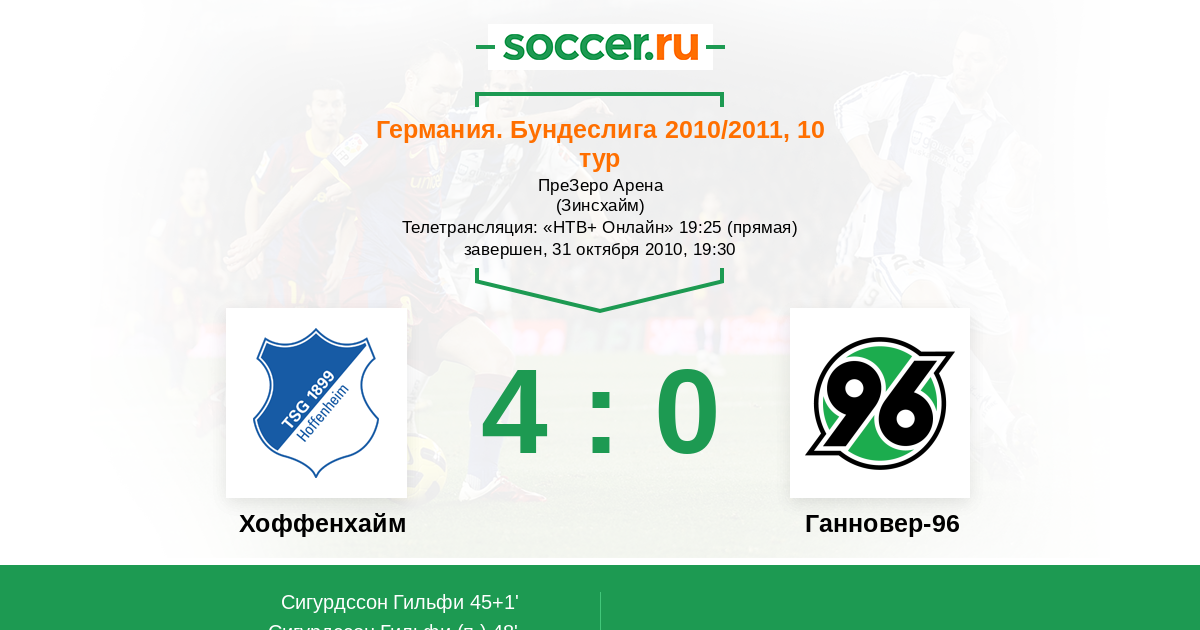 45+1' (1:0) Сигурдссон Гильфи (11) (Ба Демба (9))