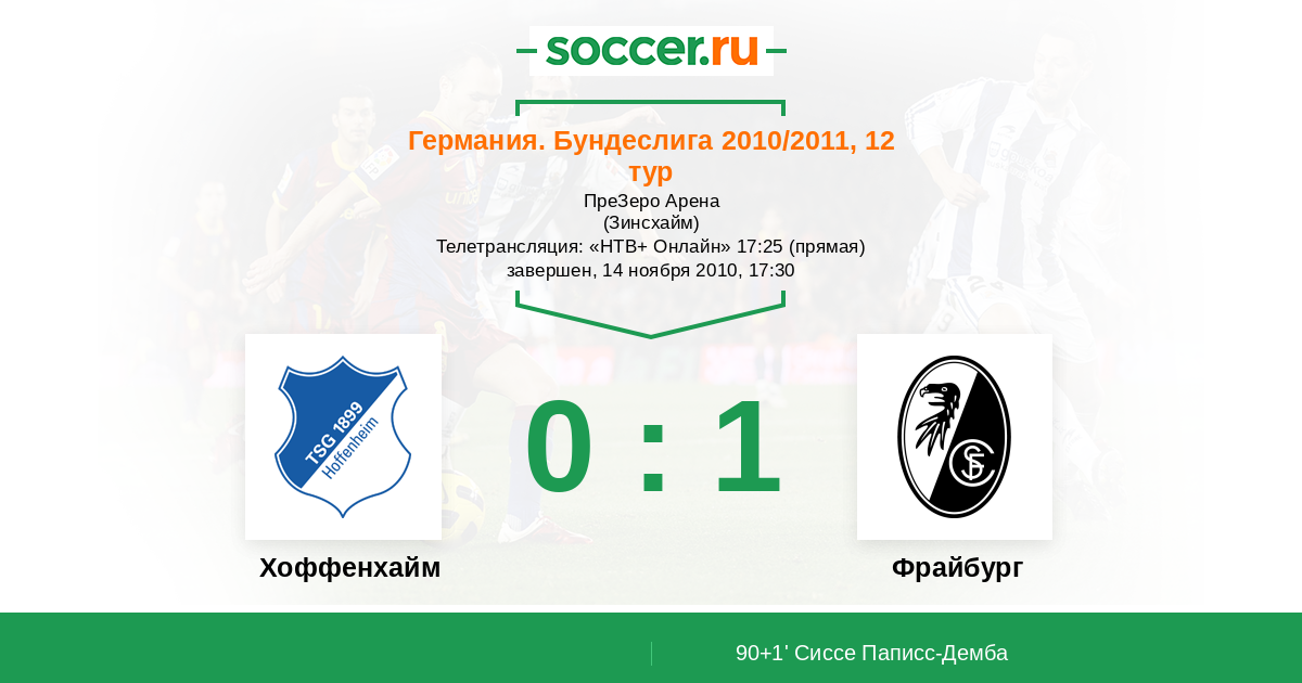 Протокол матча Хоффенхайм против Фрайбург