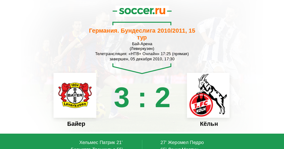 Протокол матча Байер против Кёльн
