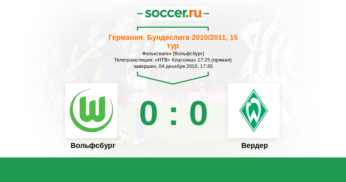 Протокол матча Вольфсбург против Вердер