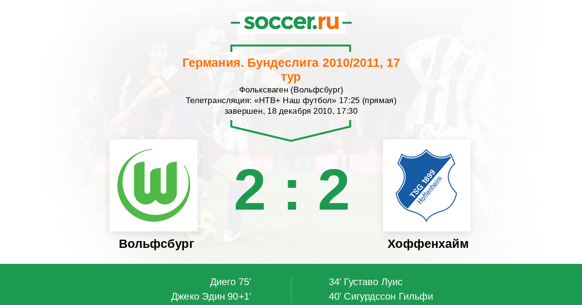 Протокол матча Вольфсбург против Хоффенхайм