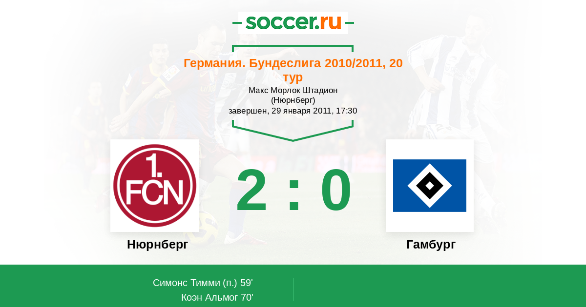 Протокол матча Нюрнберг против Гамбург