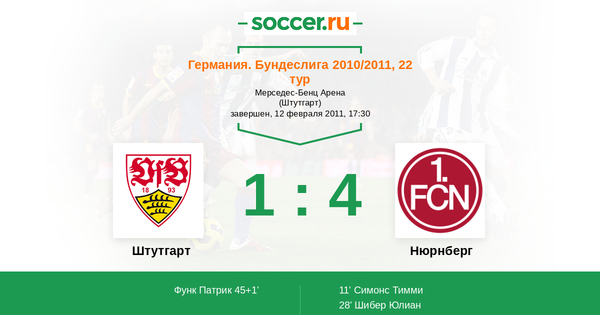 Протокол матча Штутгарт против Нюрнберг