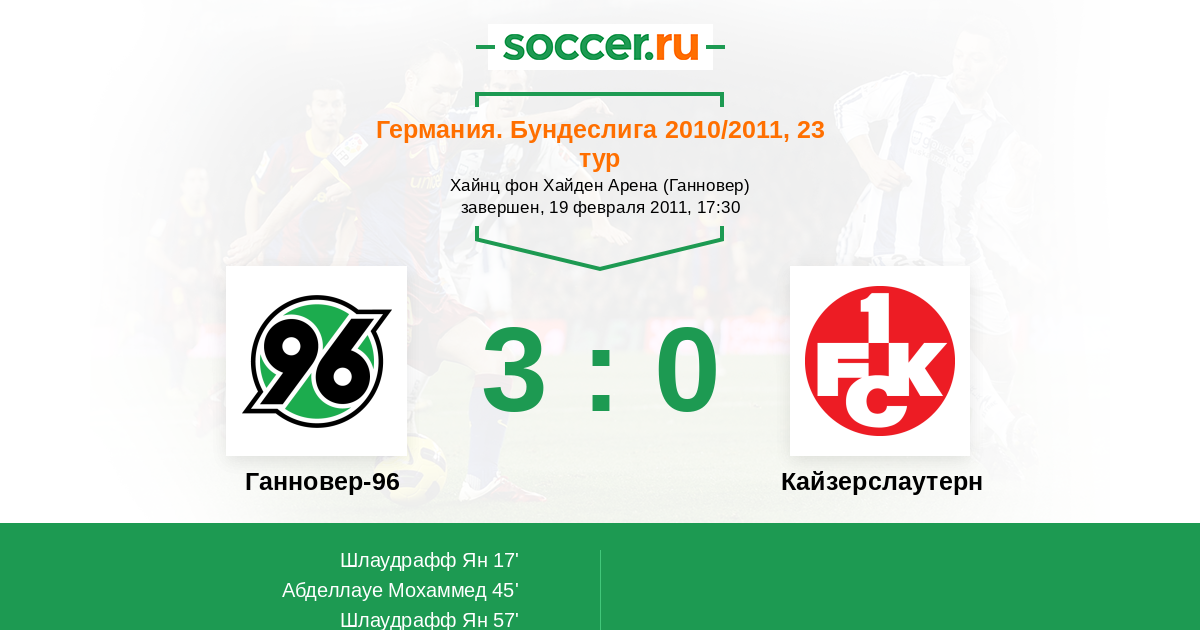 Протокол матча Ганновер-96 против Кайзерслаутерн