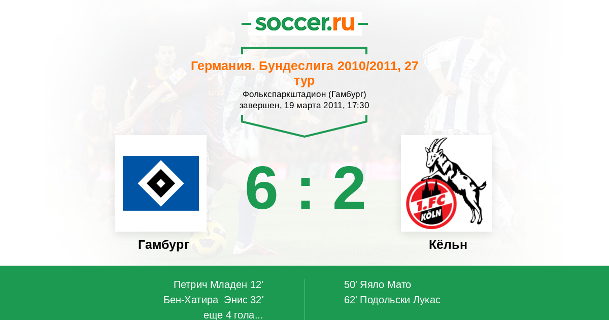 Протокол матча Гамбург против Кёльн