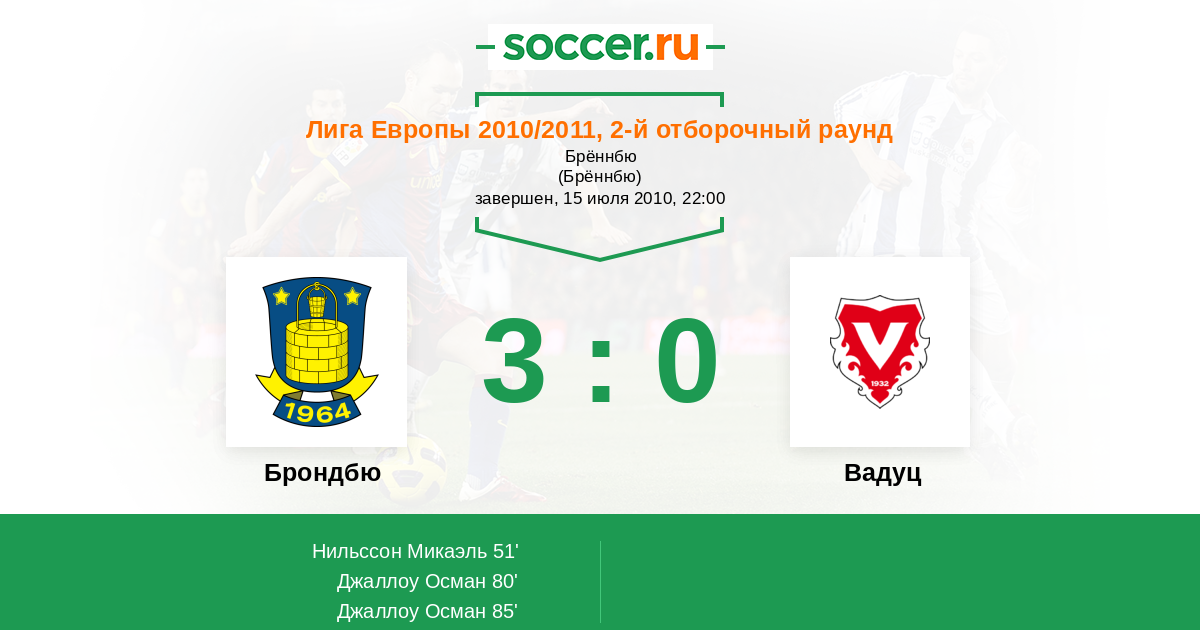 Протокол матча Брондбю против Вадуц