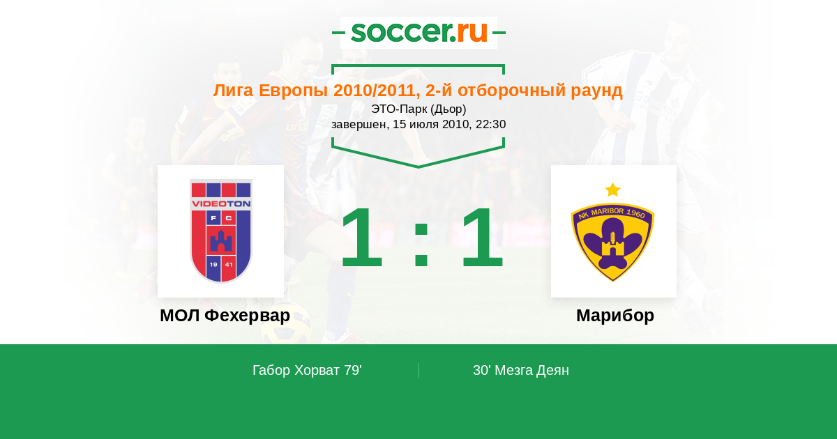 Протокол матча Видеотон против Марибор