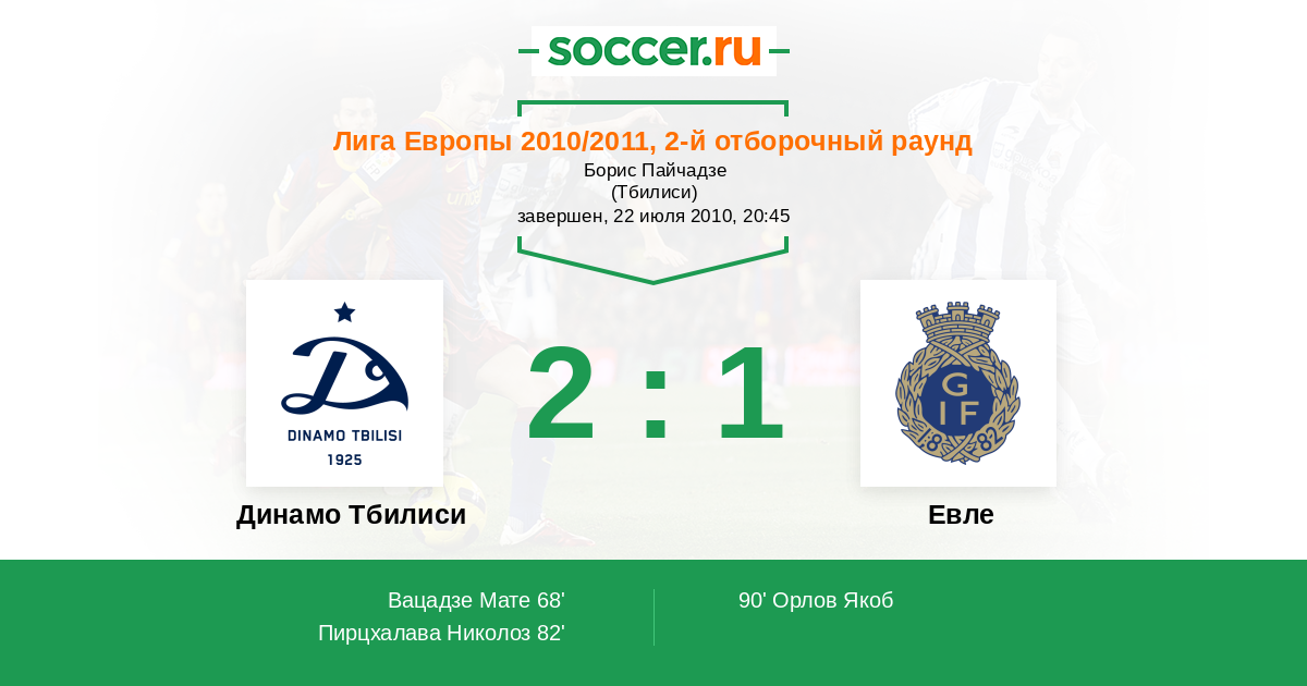 Протокол матча Динамо Тбилиси против Евле