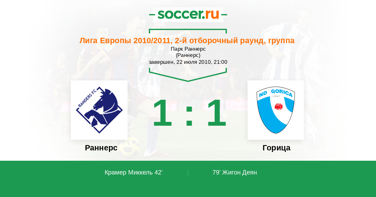 Протокол матча Раннерс против Горица
