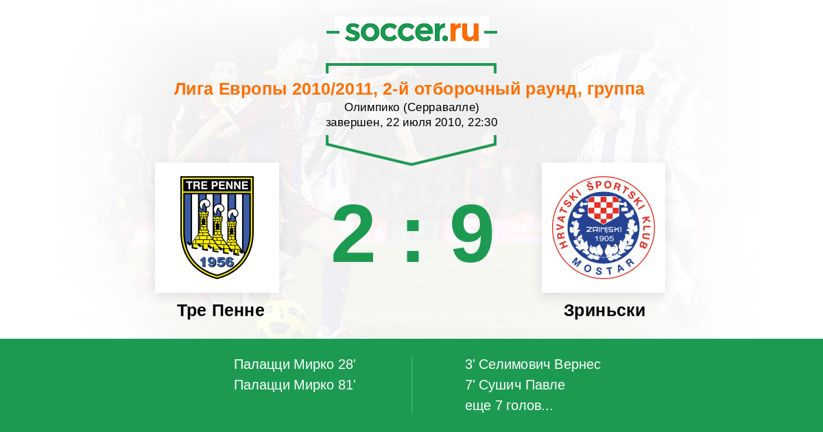 Протокол матча Тре Пенне против Зриньски