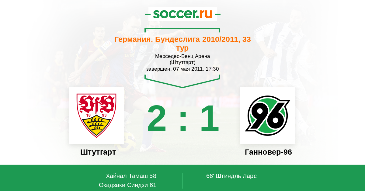 Протокол матча Штутгарт против Ганновер-96