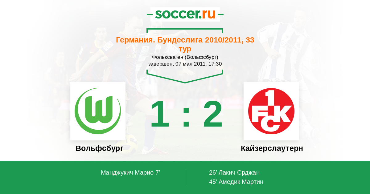 Протокол матча Вольфсбург против Кайзерслаутерн