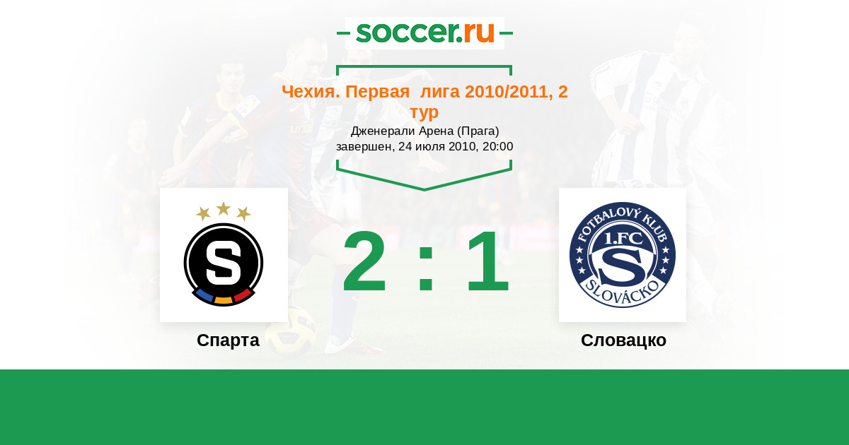 Чехия. Первая Лига 14.08.2011 Словацко Логотип футбольный клуб Словацко (Угерске-Градиште) 0:2 Логотип футбольный клуб Спарта (Прага) Спарта