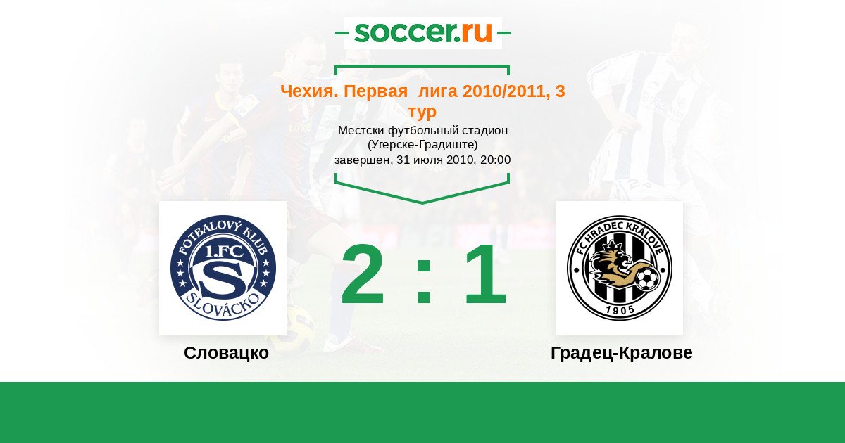 Чехия. Первая Лига 15.08.2021 Словацко Логотип футбольный клуб Словацко (Угерске-Градиште) 1:0 Логотип футбольный клуб Градец-Кралове Градец-Кралове