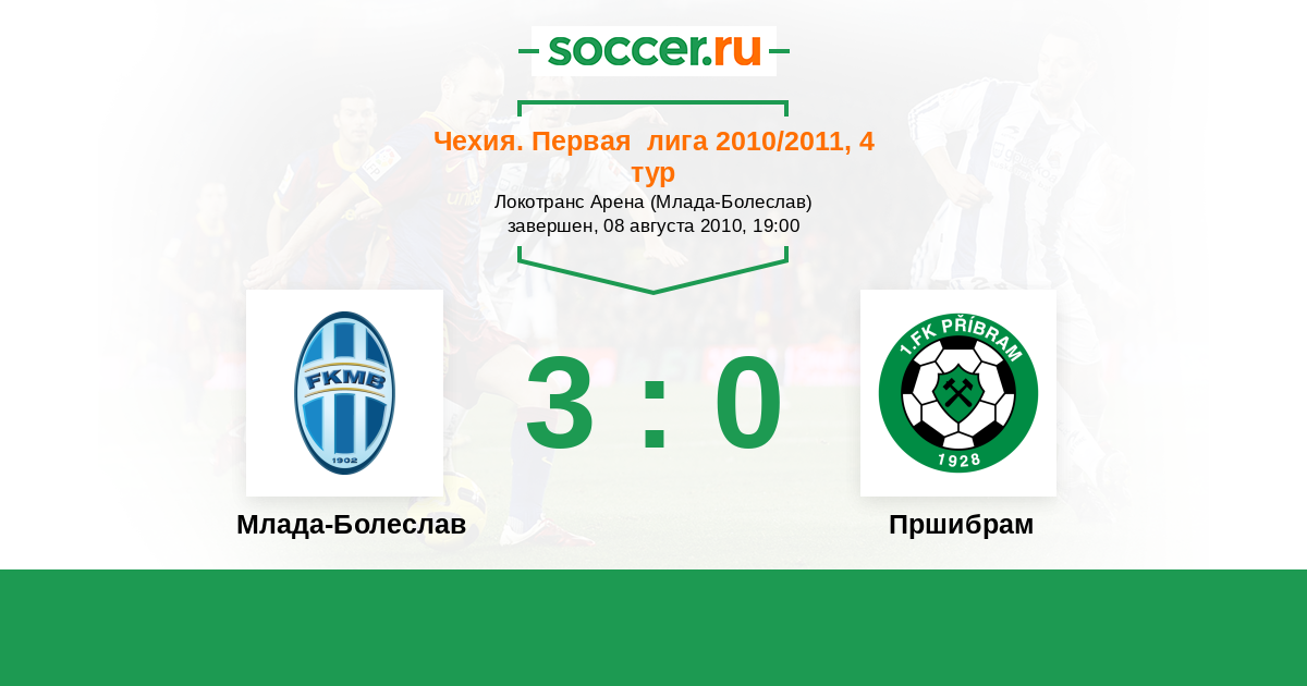 Чехия. Первая Лига 14.04.2010 Пршибрам Логотип футбольный клуб Пршибрам 2:2 Логотип футбольный клуб Млада-Болеслав Млада-Болеслав