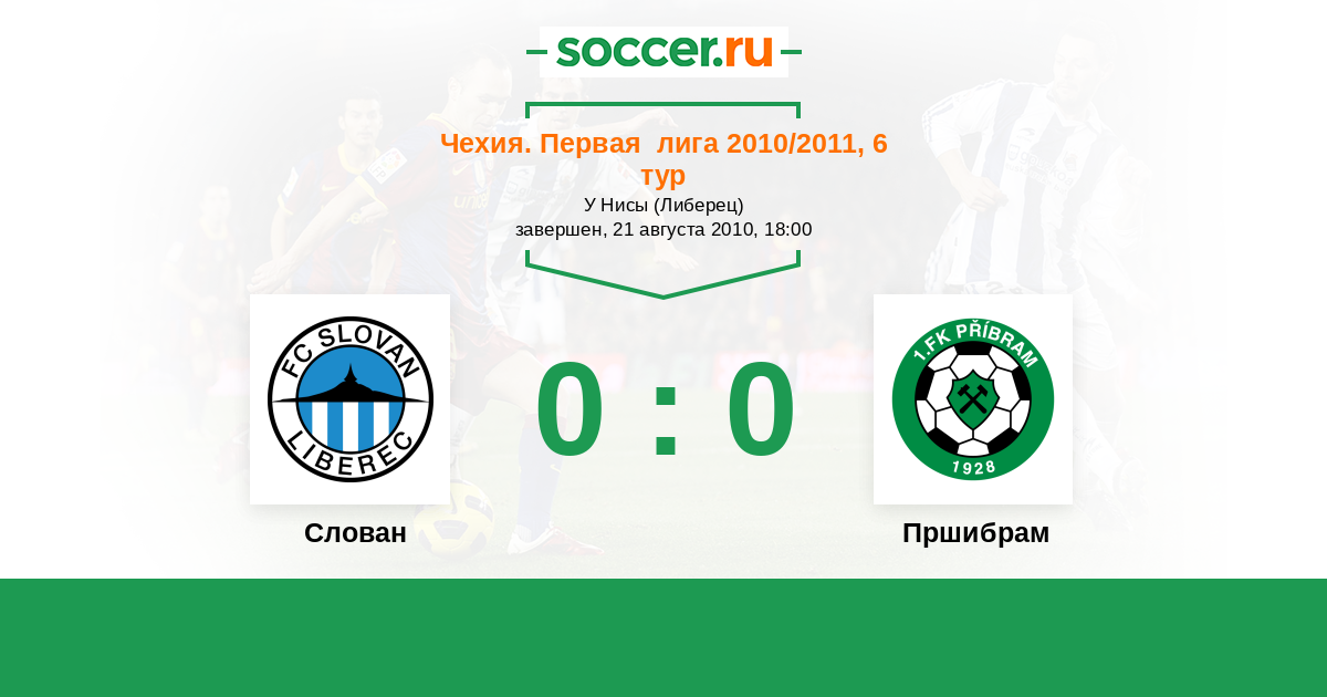 Чехия. Первая Лига 20.08.2011 Пршибрам Логотип футбольный клуб Пршибрам 2:3 Логотип футбольный клуб Слован (Либерец) Слован