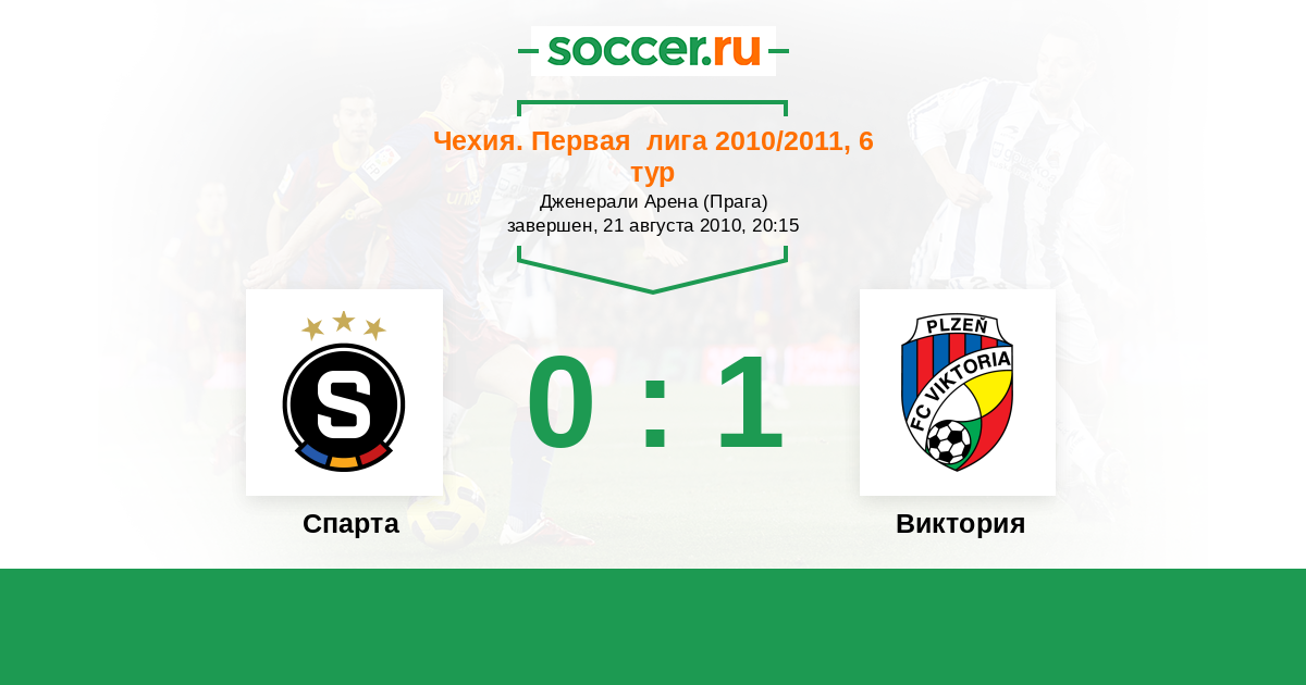 Чехия. Суперкубок 08.07.2010 Спарта Логотип футбольный клуб Спарта (Прага) 1:0 Логотип футбольный клуб Виктория (Пльзень) Виктория