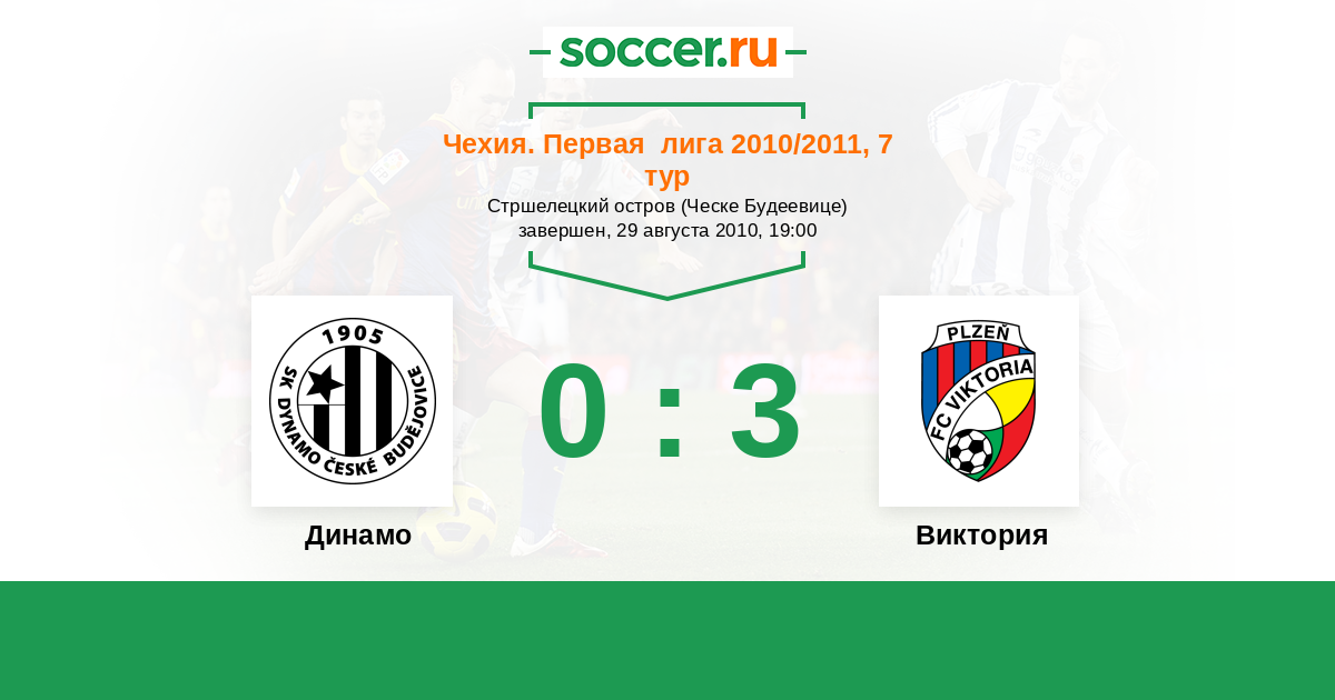 Чехия. Первая Лига 18.03.2011 Виктория Логотип футбольный клуб Виктория (Пльзень) 2:1 Логотип футбольный клуб Динамо (Ческе-Будеевице) Динамо