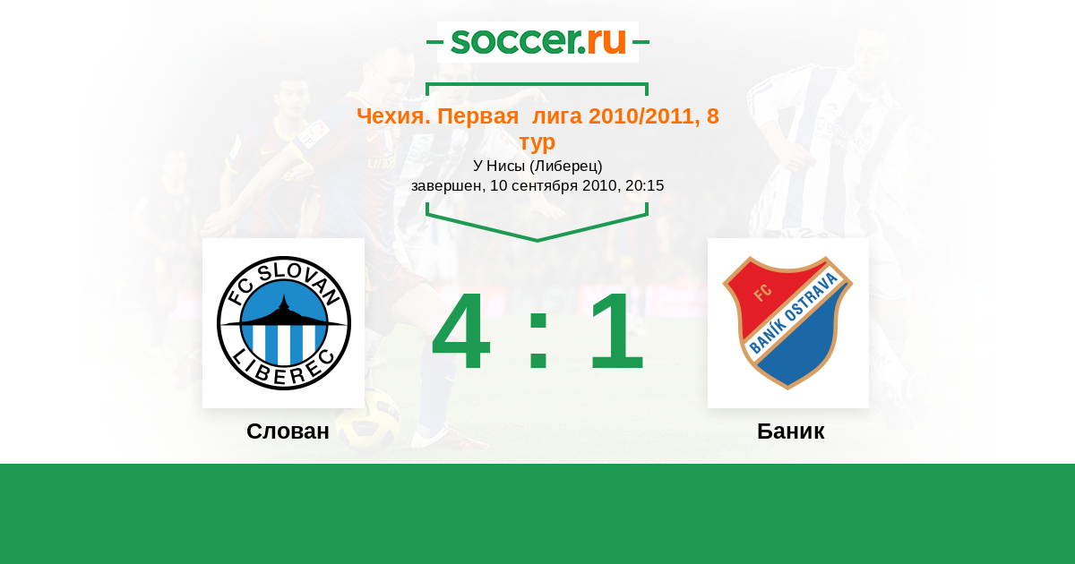 Чехия. Первая Лига 02.04.2011 Баник Логотип футбольный клуб Баник (Острава) 0:0 Логотип футбольный клуб Слован (Либерец) Слован