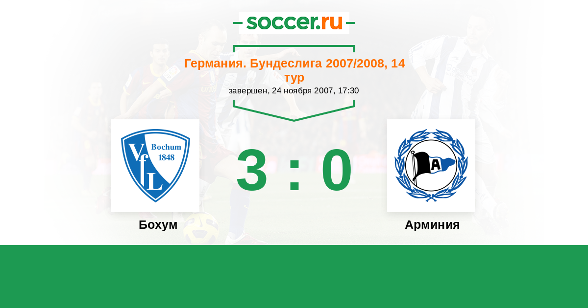 Германия. Бундеслига 03.05.2008 Арминия Логотип футбольный клуб Арминия (Билефельд) 2:0 Логотип футбольный клуб Бохум Бохум