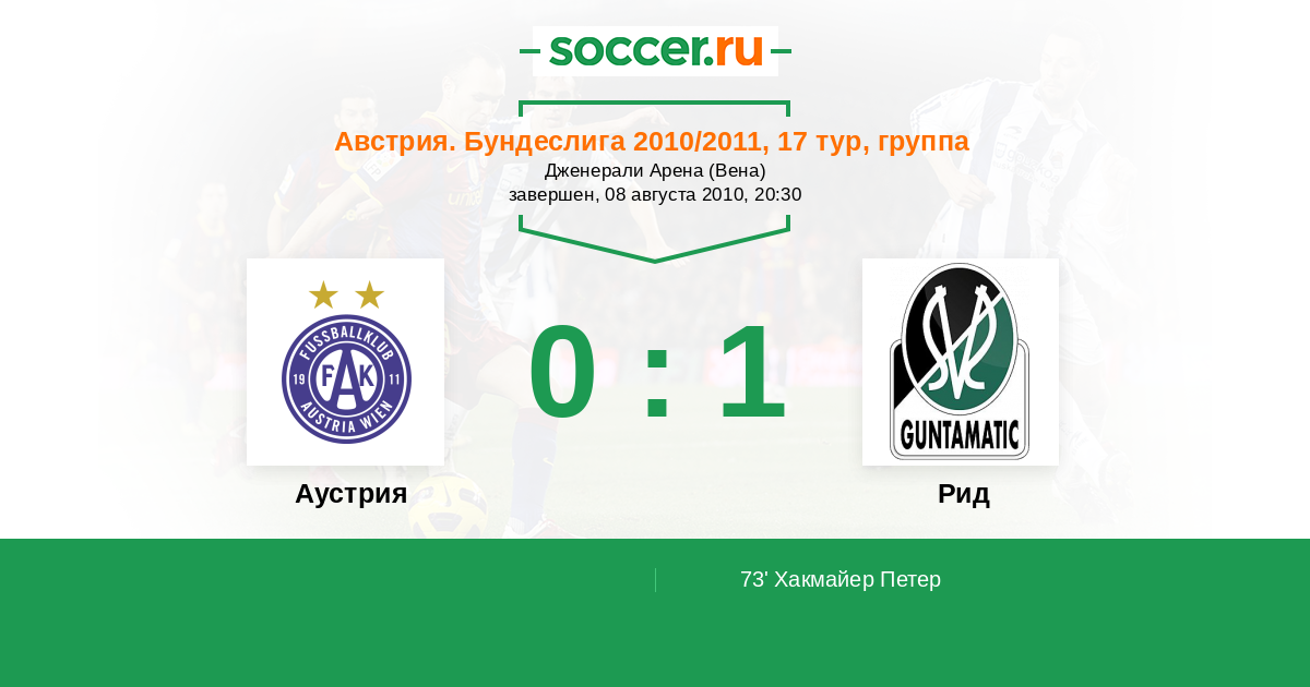 Протокол матча Аустрия против Рид