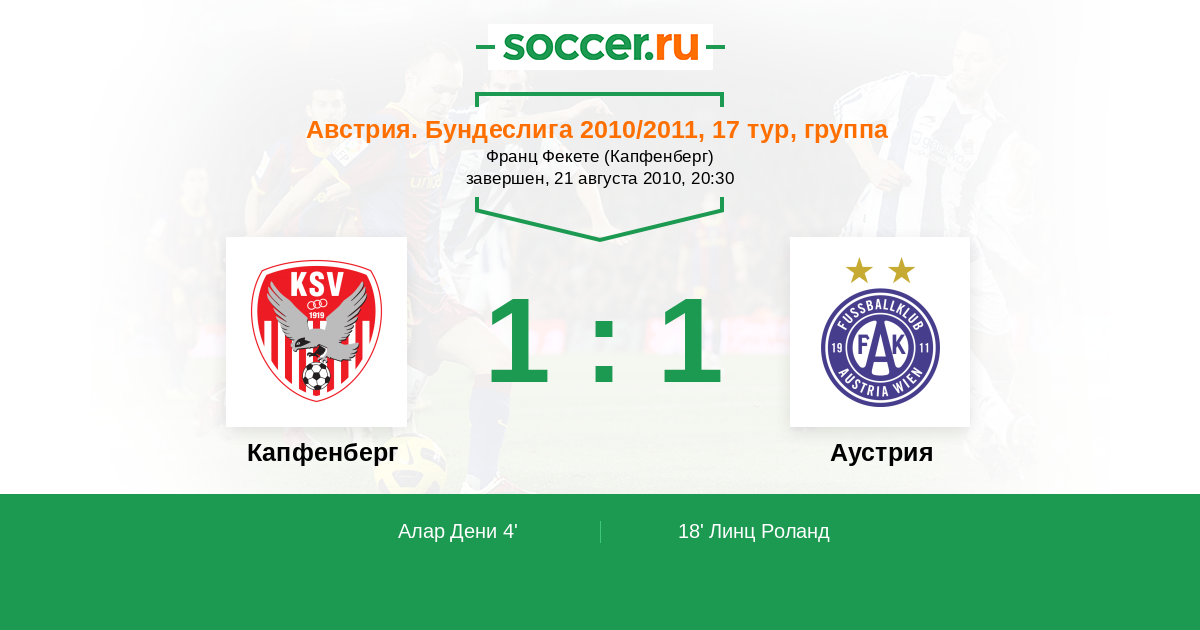 18' (1:1) Линц Роланд (9)