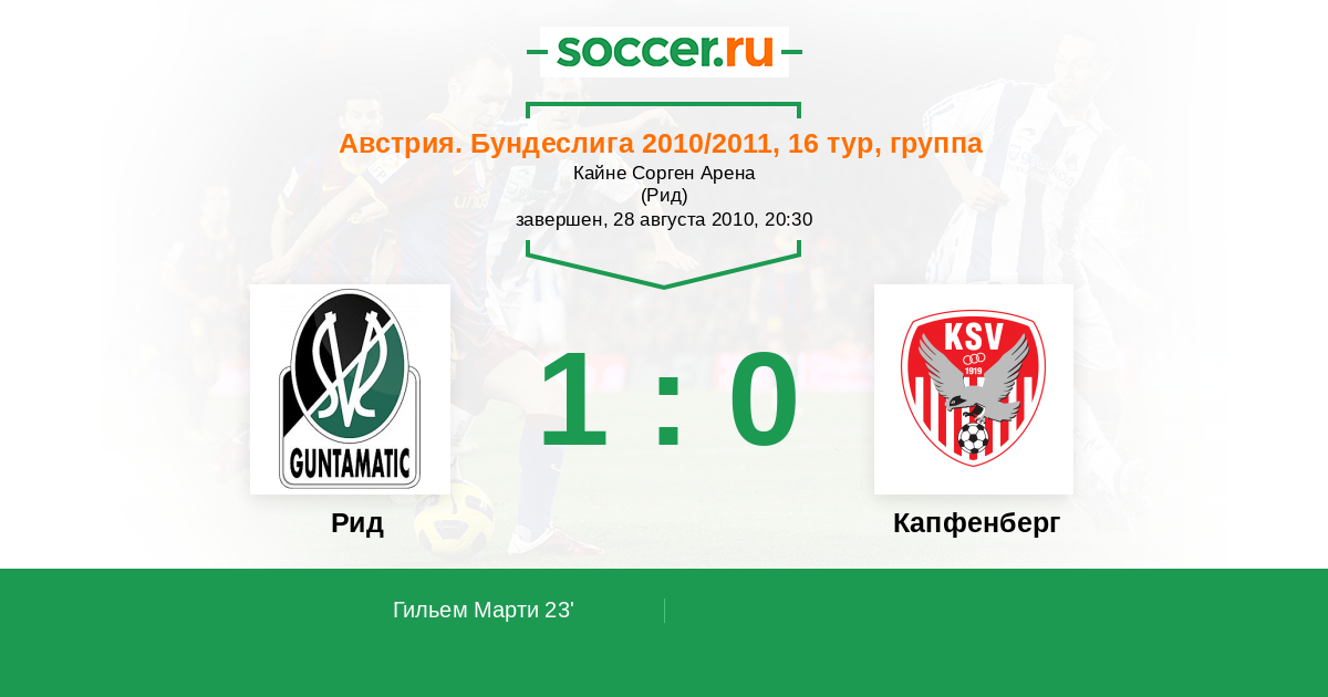 Протокол матча Рид против Капфенберг