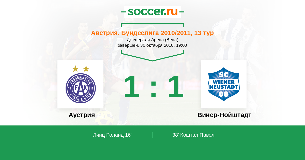 Протокол матча Аустрия против Винер-Нойштадт