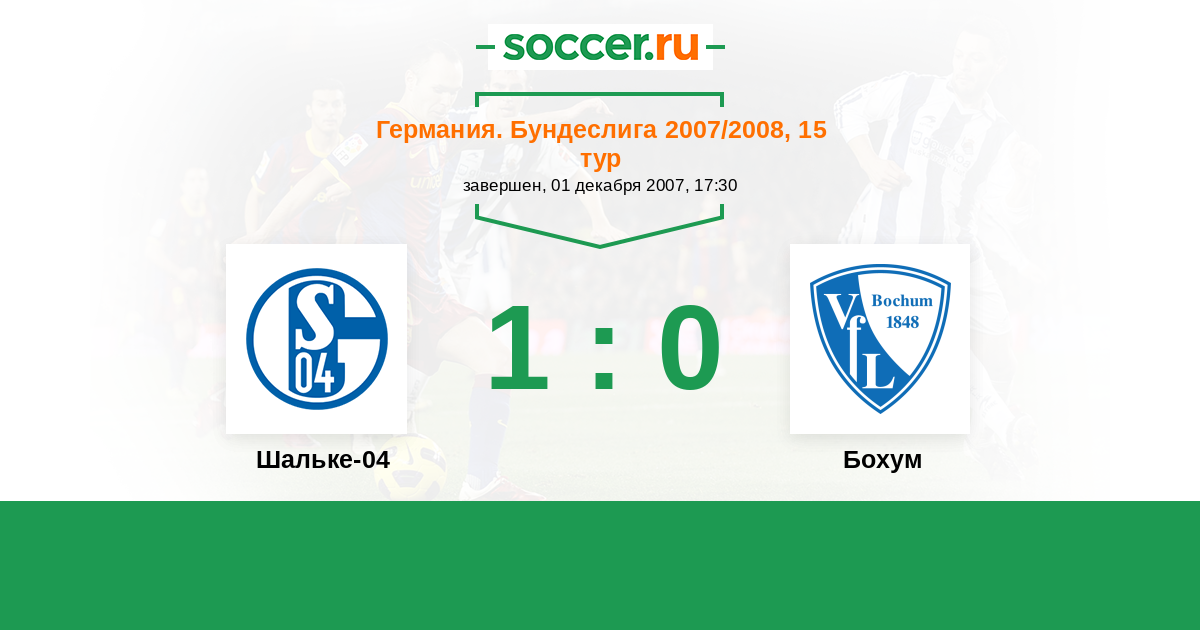 Германия. Бундеслига 30.08.2008 Шальке-04 Логотип футбольный клуб Шальке-04 (Гельзенкирхен) 1:0 Логотип футбольный клуб Бохум Бохум