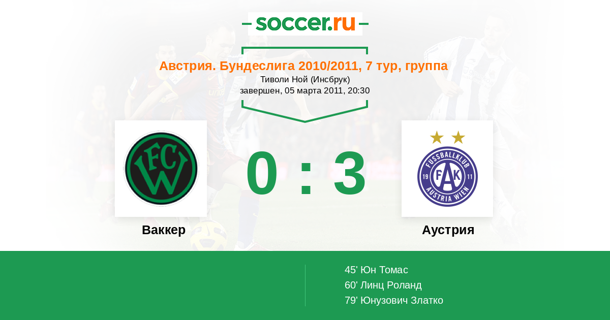 Протокол матча Ваккер против Аустрия