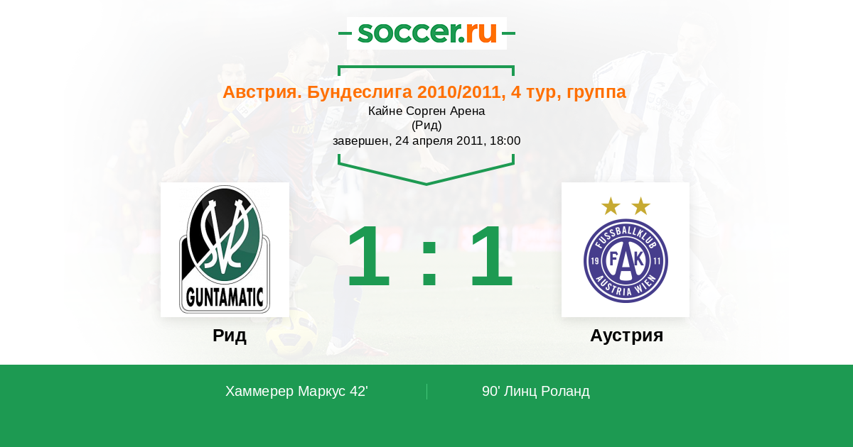 Протокол матча Рид против Аустрия