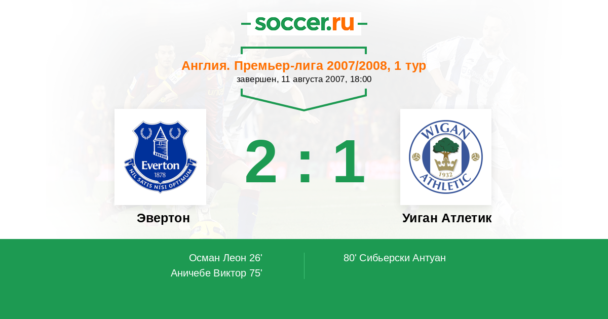 Протокол матча Эвертон против Уиган Атлетик