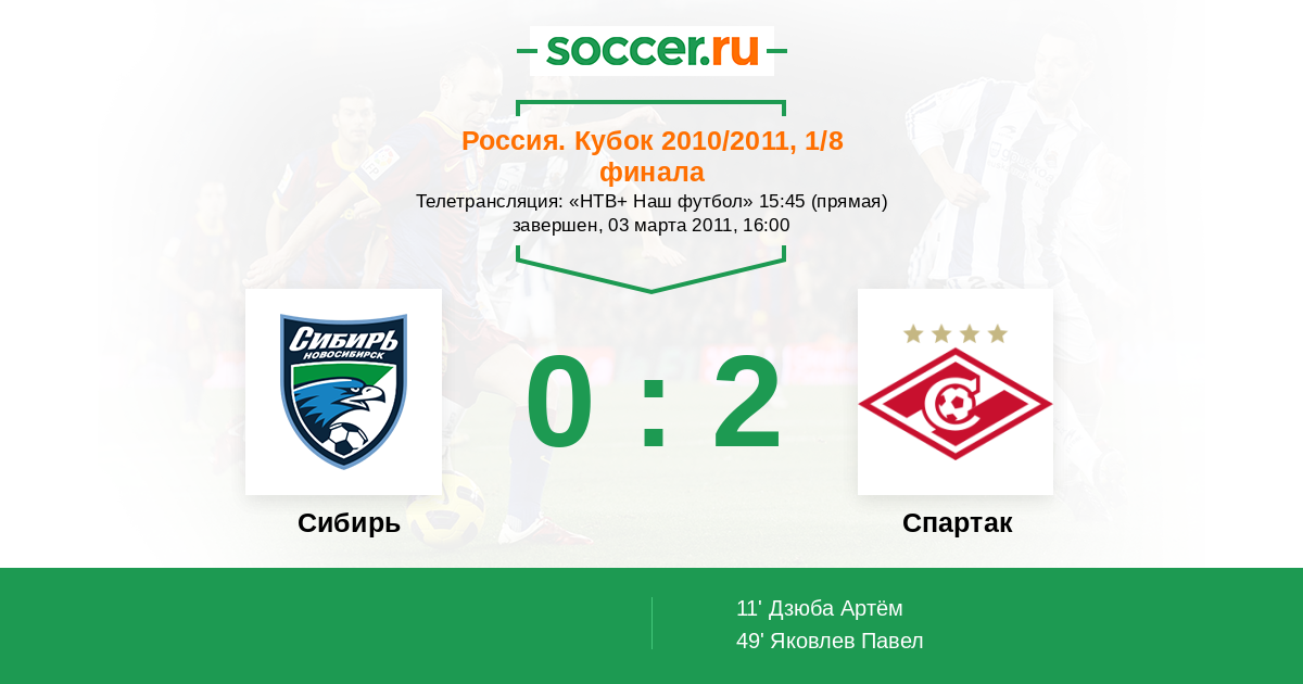 Протокол матча Сибирь против Спартак