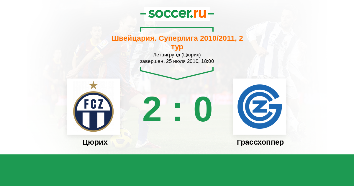 Швейцария. Суперлига 03.10.2010 Грассхоппер Логотип футбольный клуб Грассхоппер (Цюрих) 1:2 Логотип футбольный клуб Цюрих Цюрих