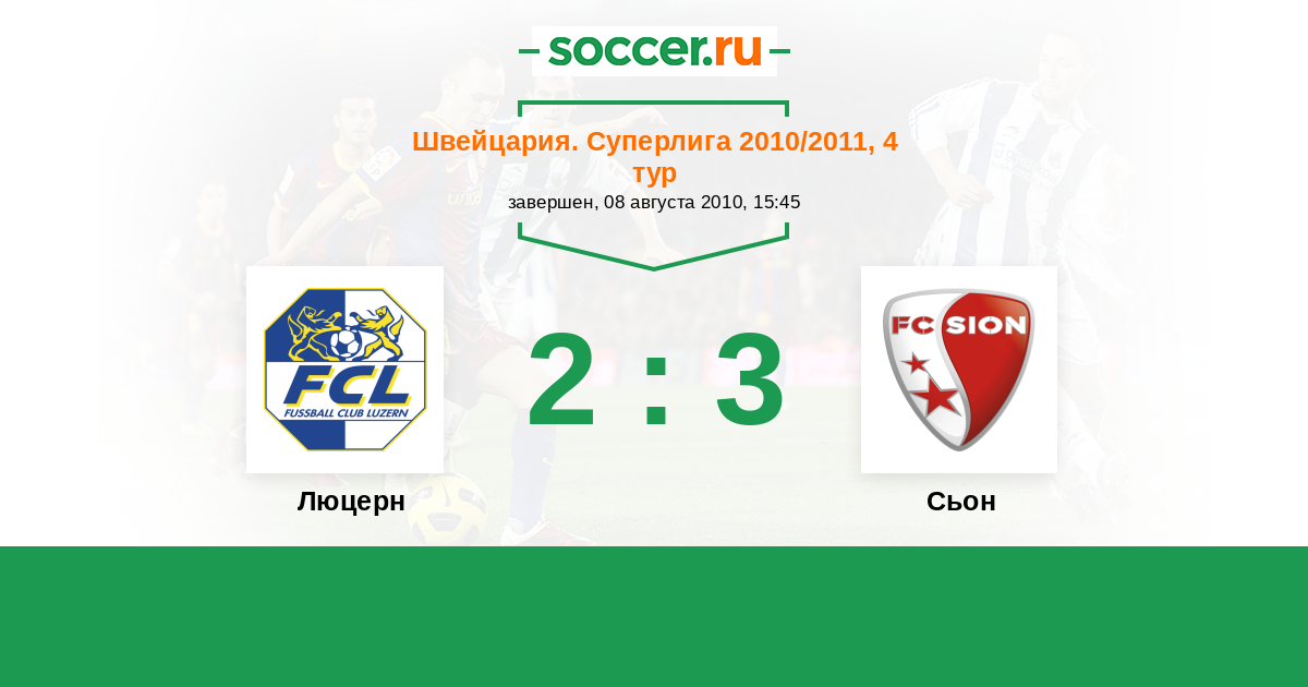 Швейцария. Суперлига 13.08.2011 Сьон Логотип футбольный клуб Сьон 1:1 Логотип футбольный клуб Люцерн Люцерн