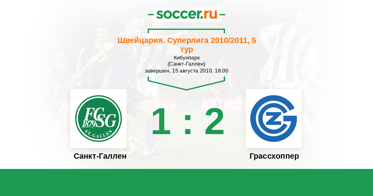 Швейцария. Суперлига 07.11.2010 Грассхоппер Логотип футбольный клуб Грассхоппер (Цюрих) 2:0 Логотип футбольный клуб Санкт-Галлен Санкт-Галлен