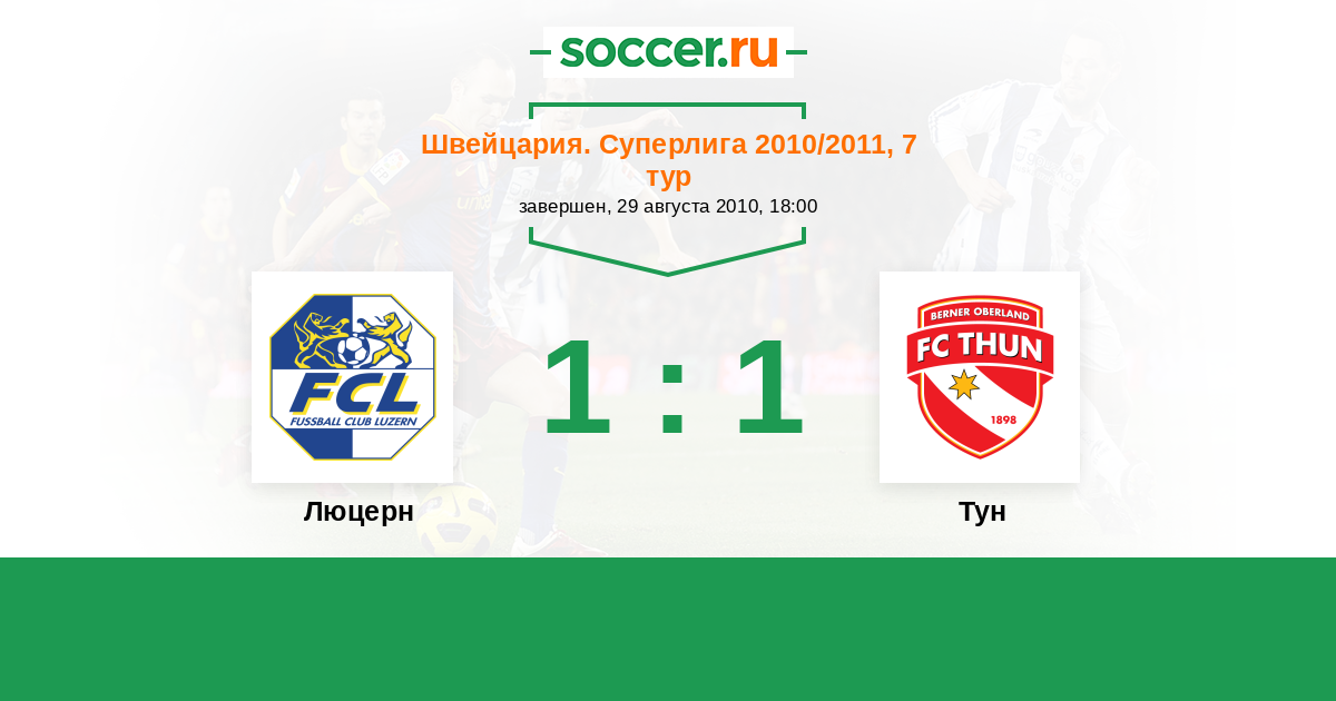 Швейцария. Суперлига 20.04.2011 Люцерн Логотип футбольный клуб Люцерн 0:1 Логотип футбольный клуб Тун Тун