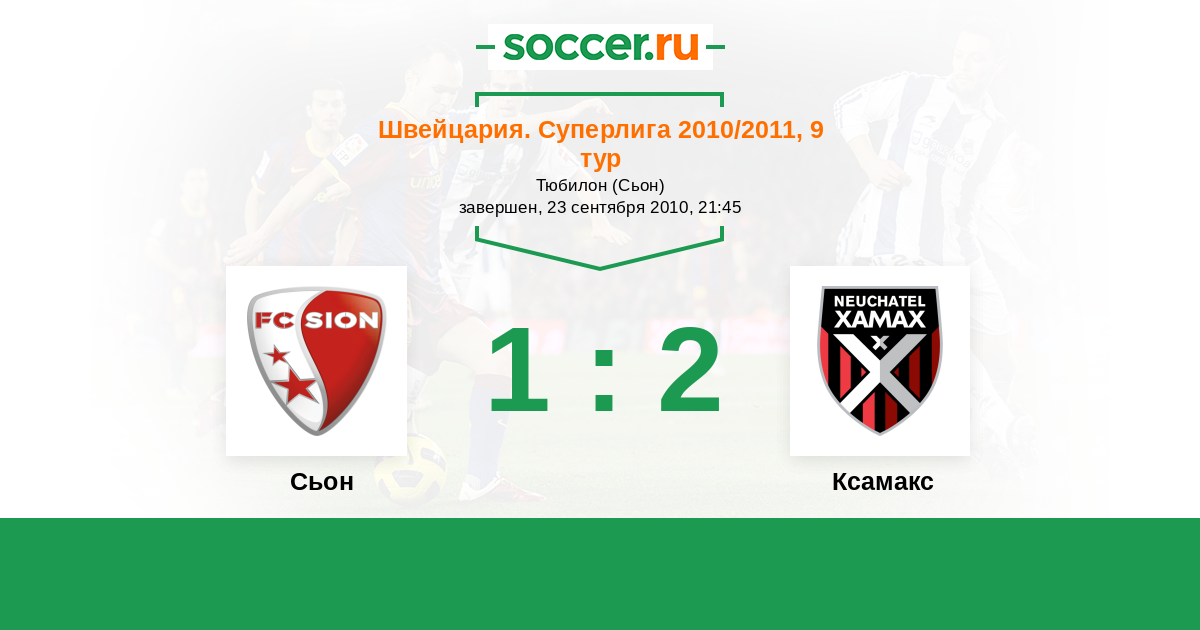 Швейцария. Суперлига 12.12.2010 Ксамакс Логотип футбольный клуб Ксамакс (Невшатель) 0:3 Логотип футбольный клуб Сьон Сьон