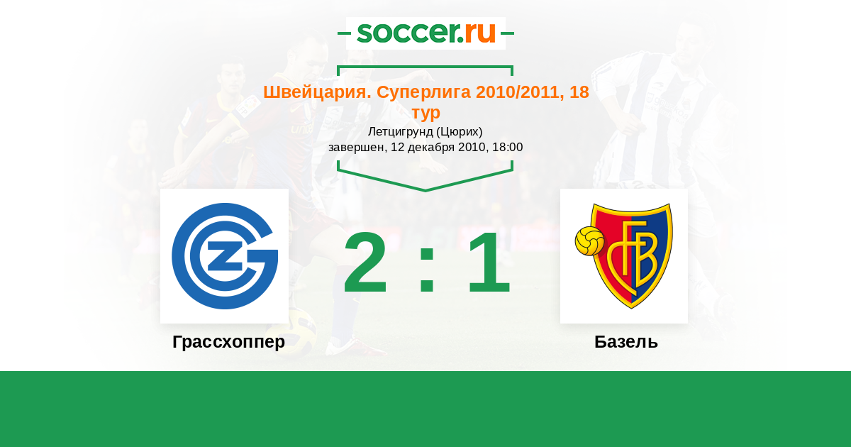 Швейцария. Суперлига 20.03.2011 Грассхоппер Логотип футбольный клуб Грассхоппер (Цюрих) 1:2 Логотип футбольный клуб Базель Базель