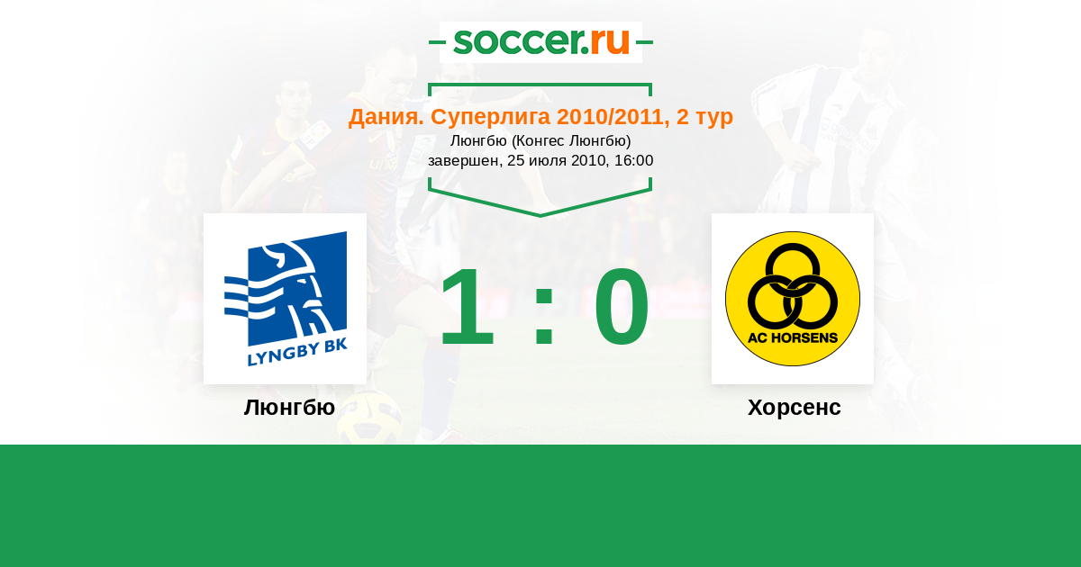 Дания. Суперлига 14.08.2011 Люнгбю Логотип футбольный клуб Люнгбю (Конгес Люнгбю) 1:1 Логотип футбольный клуб Хорсенс Хорсенс