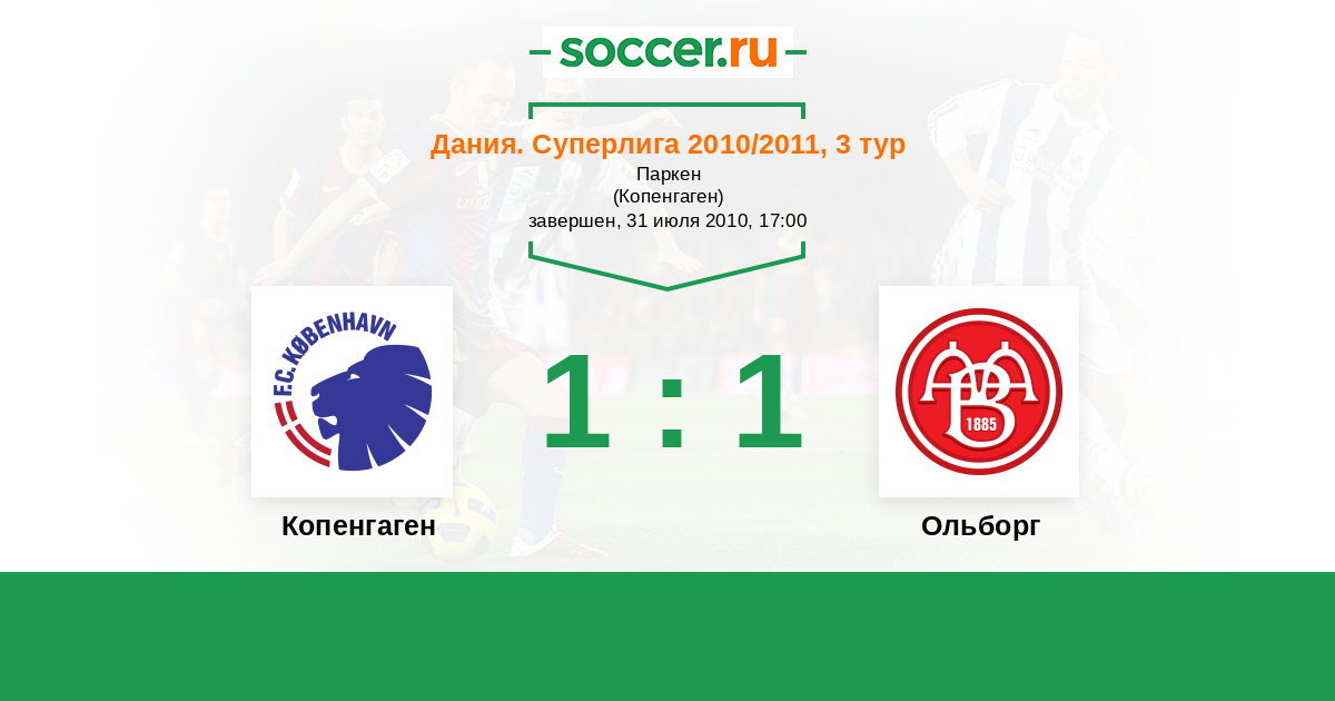 Дания. Суперлига 12.03.2011 Ольборг Логотип футбольный клуб Ольборг 0:1 Логотип футбольный клуб Копенгаген Копенгаген