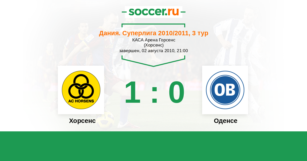 Дания. Суперлига 07.03.2011 Хорсенс Логотип футбольный клуб Хорсенс 2:1 Логотип футбольный клуб Оденсе Оденсе