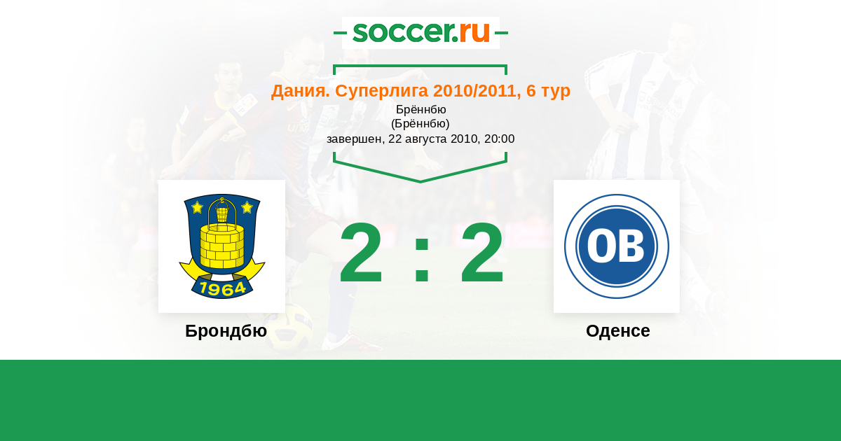 Дания. Суперлига 28.11.2010 Брондбю Логотип футбольный клуб Брондбю (Брённбю) 2:0 Логотип футбольный клуб Оденсе Оденсе