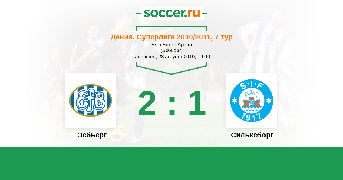 Дания. Суперлига 21.11.2010 Силькеборг Логотип футбольный клуб Силькеборг 1:1 Логотип футбольный клуб Эсбьерг Эсбьерг