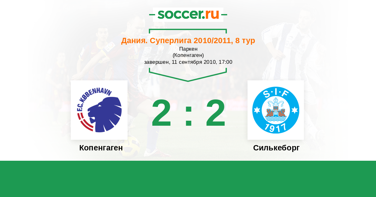 Дания. Суперлига 24.10.2010 Силькеборг Логотип футбольный клуб Силькеборг 0:3 Логотип футбольный клуб Копенгаген Копенгаген