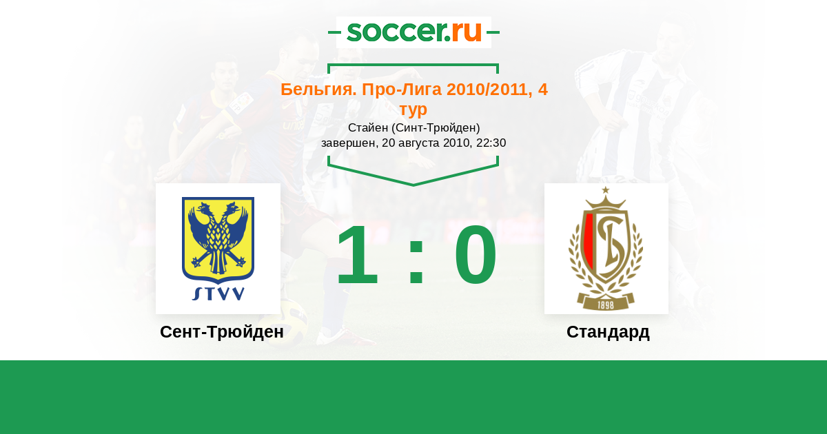 Бельгия. Про-Лига 11.12.2010 Стандард Логотип футбольный клуб Стандард (Льеж) 1:0 Логотип футбольный клуб Сент-Трюйден (Синт-Трёйден) Сент-Трюйден